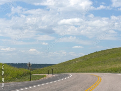 © GemStocks, Fototapeta premium Scenic winding road with rolling hills in Sundance, Wyoming