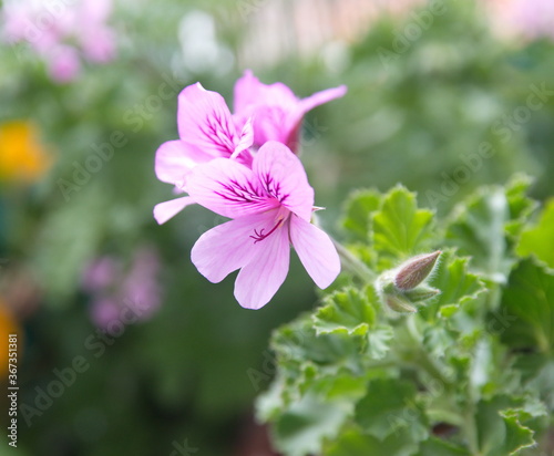 Fototapeta premium Scented pelargonium "Torrento", fragrant leaves pelargonium with pink flowers