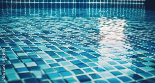 Obraz premium Schöne blaues Mosaikfliesen in einem Schwimmbecken mit Sonnenlichtreflexion, Generative AI