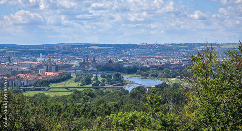 © Marc Kunze, Obraz premium Schöner Panoramablick auf die Stadt Dresden im Sommer