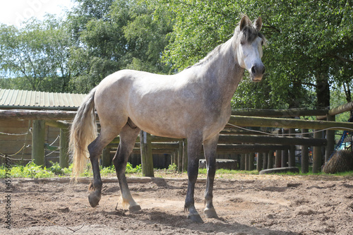 Fototapeta premium Schönes Pferd/Schimmel auf der Weide