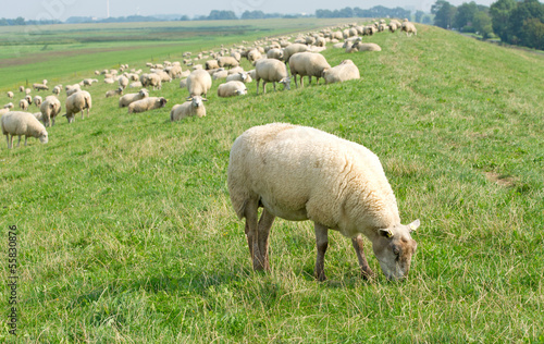 Fototapeta premium Schaf auf dem Deich mit Schafherde