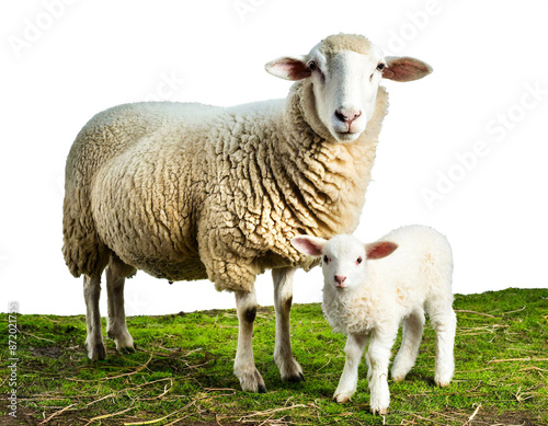 © oxie99, Obraz premium Schaf und Lamm isoliert auf weißen Hintergrund, Freisteller