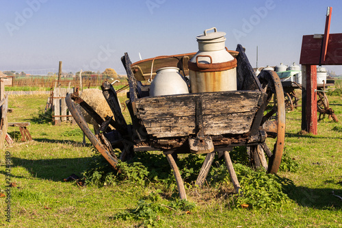 © joerghoffmann, Obraz premium Schaf und Milchkarren auf der Weide