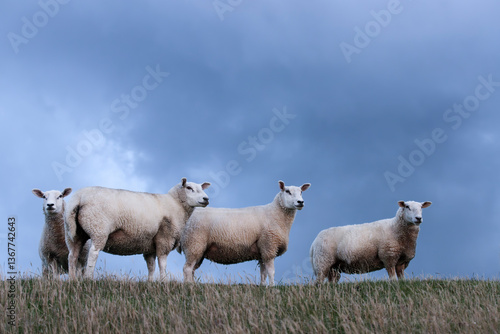 © Markus Hallmann, Obraz premium Schafe auf dem Deich