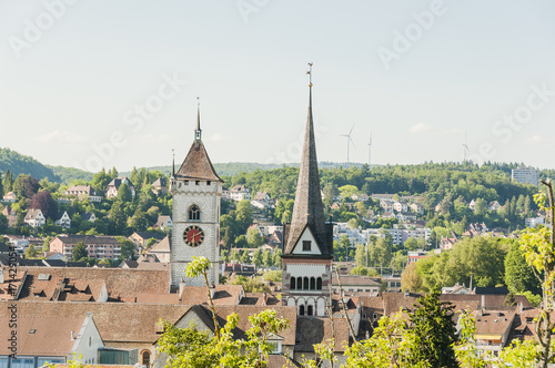 © bill_17, Fototapeta premium Schaffhausen, Stadt, Altstadt, Altstadthäuser, Münsterkirche, St, Johann, Pfarrkirche, Stadtrundgang, Rhein, Frühling, Sommer, Schweiz