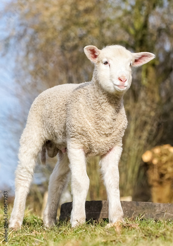 © Countrypixel, Fototapeta premium Schafhaltung - niedliches Lamm auf einer Weide, Porträt