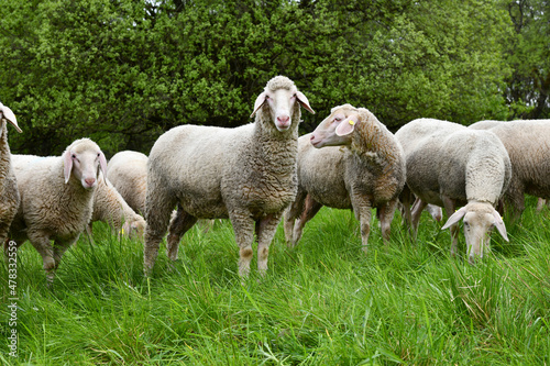 © Rhönbergfoto, Fototapeta premium Schafherde am grünen Band