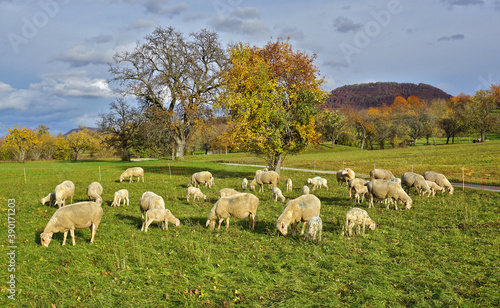 © JRG, Obraz premium Schafherde auf der Herbstweide
