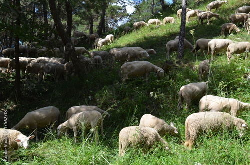 © Nicole, Obraz premium Schafherde auf Waldweide