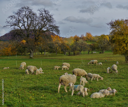 © JRG, Fototapeta premium Schafherde mit Lämmer auf der Herbstweide