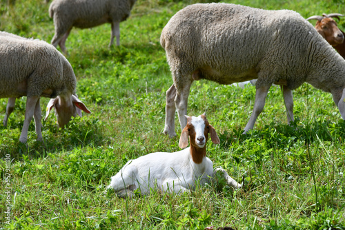 © Rhönbergfoto, Fototapeta premium Schafherde mit Ziegen