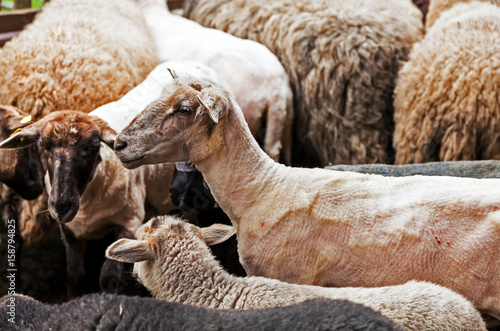 Naklejka premium Schafherde, Schafe geschoren und ungeschoren