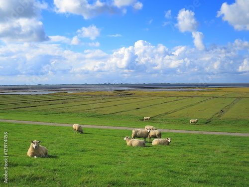 Obraz premium Schafwiesen an der Nordsee in Husum an der Dockkoogspitze