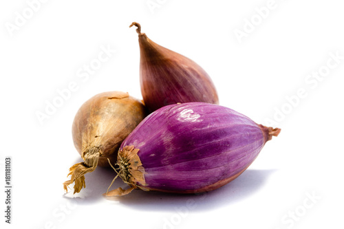 © oxie99, Fototapeta premium Schalotten Schalotte isoliert freigestellt auf weißen Hintergrund, Freisteller