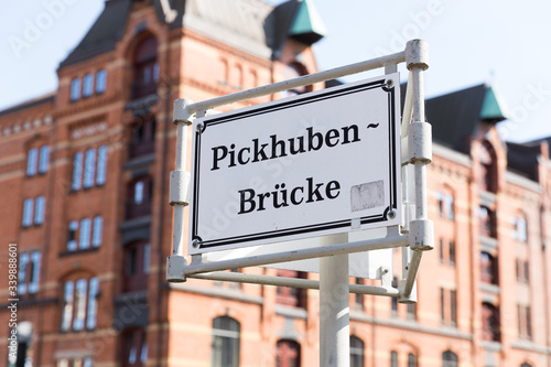 © Christian Schwier, Fototapeta premium Schild der "Pickhuben-Brücke"