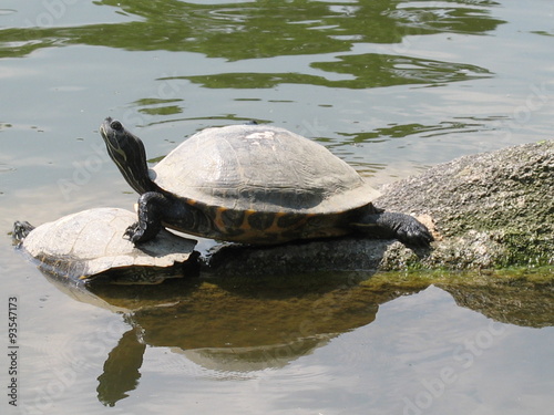 © hadoka68163, Obraz premium Schildkröte beim Sonnenbad