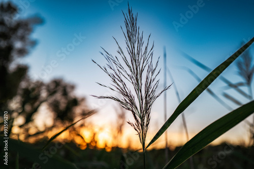 Obraz premium Schilf, Gräser im Sonnenuntergang