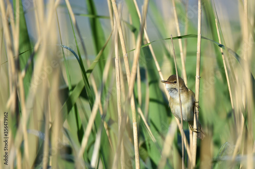 © dieter76, Fototapeta premium Schilfrohrsänger im Schilf