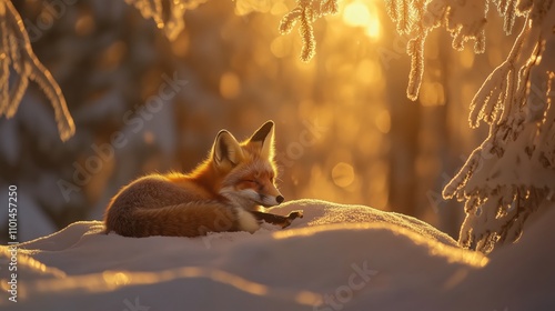 © Red Tiger Design, Fototapeta premium Schlafender Fuchs im weichen Schnee