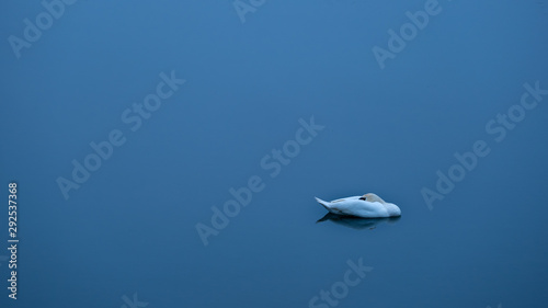 Obraz premium Schlafender Höckerschwan am frühen Morgen