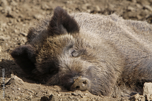 © Martina Berg, Fototapeta premium Schlafendes Wildschwein