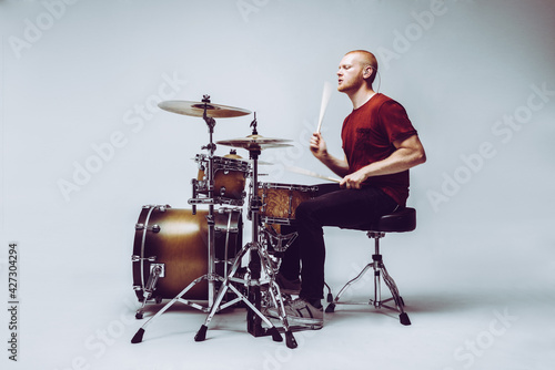 © Reprostation, Fototapeta premium Schlagzeug und Schlagzeuger von der Seite