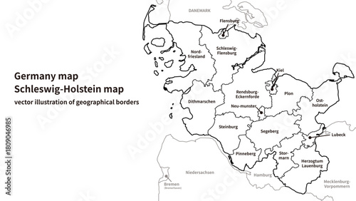© lee_hak, Obraz premium Schleswig-Holstein Map – Detailed State Map of Northern Germany