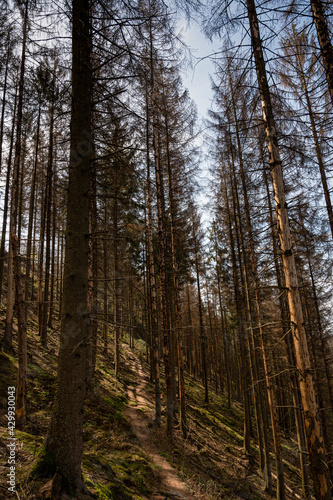 Fototapeta premium Schmaler Wanderpfad bei Sonne im Wald