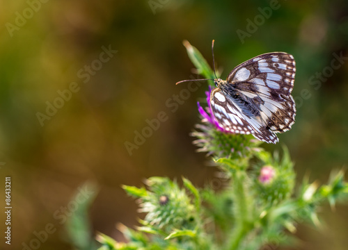 © parallel_dream, Fototapeta premium Schmetterling besucht eine Distel im Sommermorgen