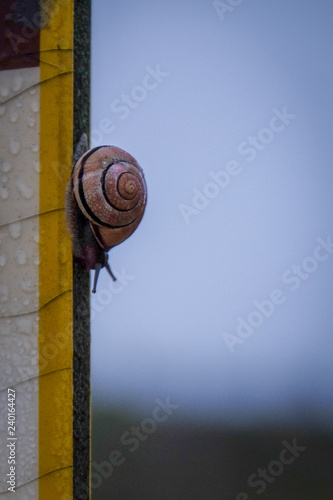 © Schulterblick, Fototapeta premium Schnecke am Schild