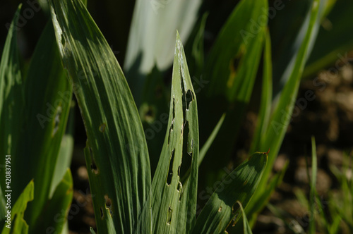 Obraz premium Schneckenfrass an Iris