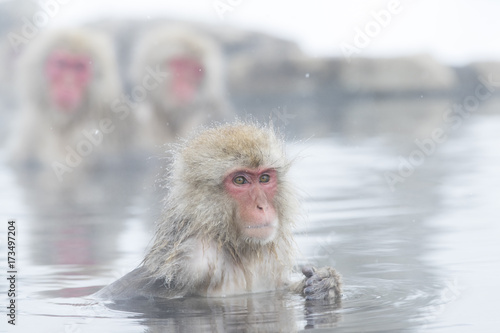 © aussieanouk, Naklejka premium Schneeaffen in der Thermalquelle