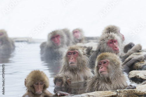Fototapeta premium Schneeaffen in der Thermalquelle