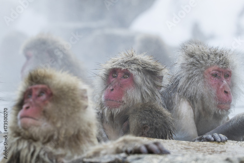Fototapeta premium Schneeaffen in der Thermalquelle
