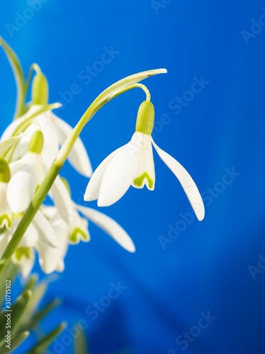 Obraz premium Schneeglöckchen - blauer Hintergrund