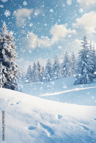 Naklejka premium Schneelandschaft mit Schneeflocken