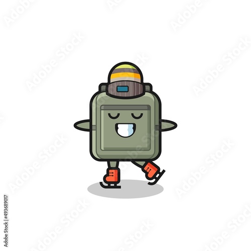 Fototapeta premium school bag cartoon as an ice skating player doing perform
