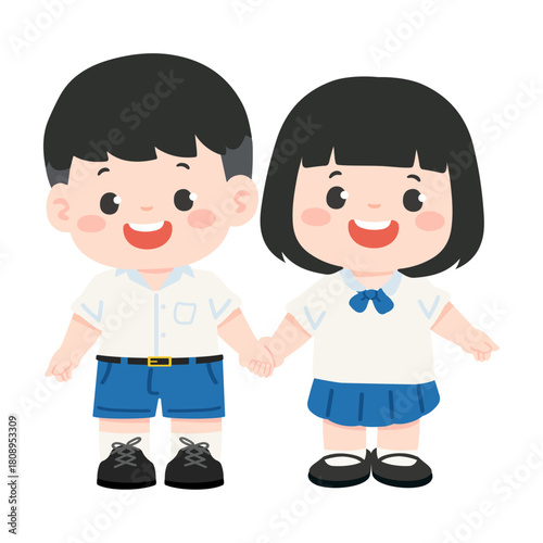 © focus_bell, Fototapeta premium School Children Holding Hands cartoon