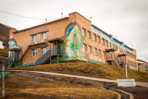 Obraz premium School facade in Barentsburg, Svalbard
