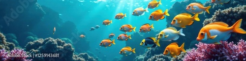 Naklejka premium School of colorful fish swimming together in the ocean , ocean, fishing, aquatic