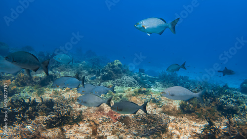 Fototapeta premium School of reef fish swimming in clear blue Caribbean waters