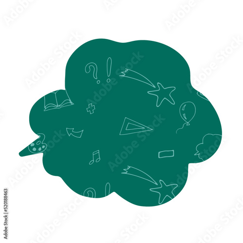© Katerina Polibina, Obraz premium School pattern, school elements in bubble comic speech with green chalkboard, on white background. The concept of education. Vector illustration for school backpack pencil case notebook print clothes