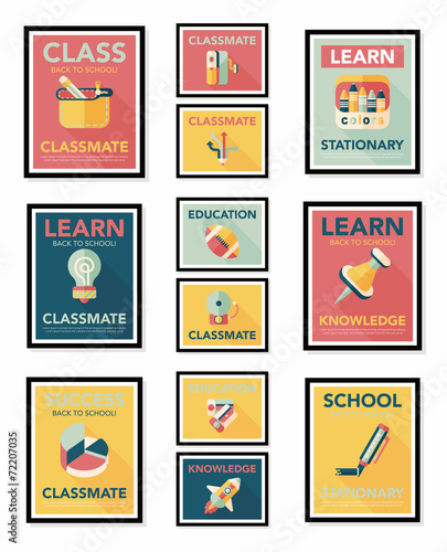 © eatcute, Naklejka premium School poster flat banner design flat background set, eps10