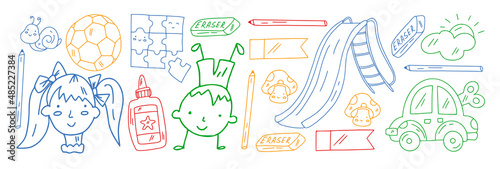 Fototapeta premium School, preschool, education. Creativity and imagination. Little children...