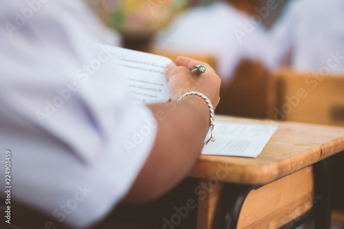 © arrowsmith2, Obraz premium School students taking exam writing answer in classroom with stress