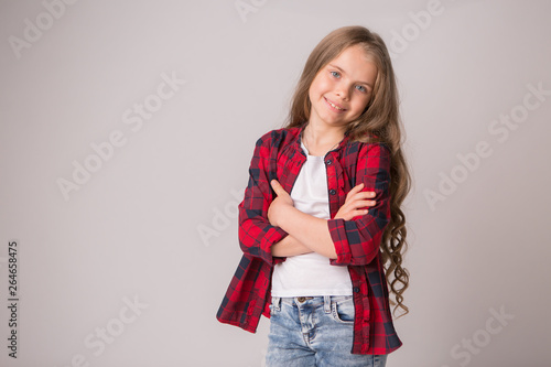 © Tina kids photo, Fototapeta premium schoolgirl girl on light background