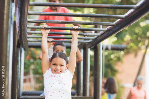 © WavebreakMediaMicro, Fototapeta premium Schoolgirl hanging on monkey rack