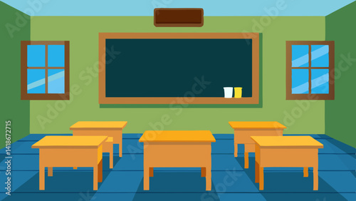 Fototapeta premium Schoolroom Background with Blackboard and Chairs Vector