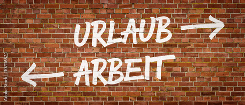 Obraz premium Schrift auf Backsteinmauer - Urlaub oder Arbeit